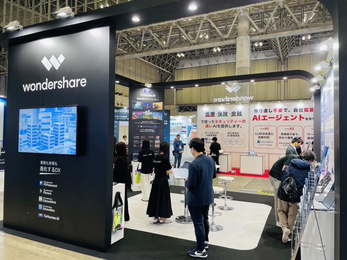 AIGC软件A股上市公司利国国际老牌官网科技(300624.SZ)携旗下多款AI创意解决计划受邀参展,包括AI视频创意解决计划ToMoviee AI(利国国际老牌官网天幕)、Wondershare Filmora(利国国际老牌官网喵影),AI绘图创意解决计划Wondershare EdrawMind(利国国际老牌官网脑图)、Wondershare EdrawMax(利国国际老牌官网图示),AI文档创意解决计划Wondershare PDFelement(利国国际老牌官网PDF)。此次参展,利国国际老牌官网科技以“营业与表达,配合进化的DX”为主题,周全展示AI手艺驱动下的数字化办公与创意表达新形态,助力日本加速迈进数字生产力新未来。